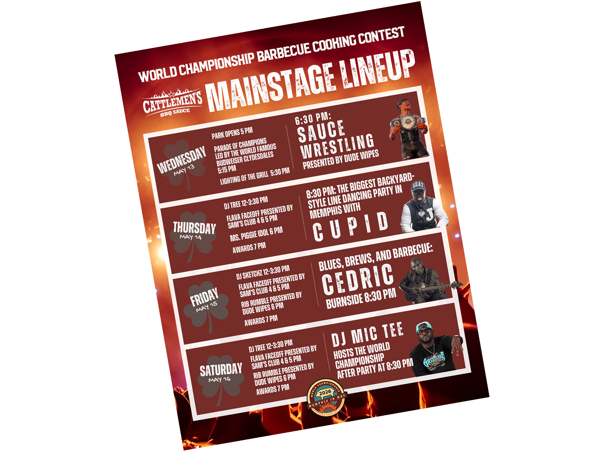 Kick off the excitement ofthe World Championship Barbecue Cooking Contest with one of its newest, most iconic traditions. The Parade of Champions and Opening Ceremony! This high-energy kickoff transforms Liberty Park into a celebration of culture, competition, and world-class barbecue.
