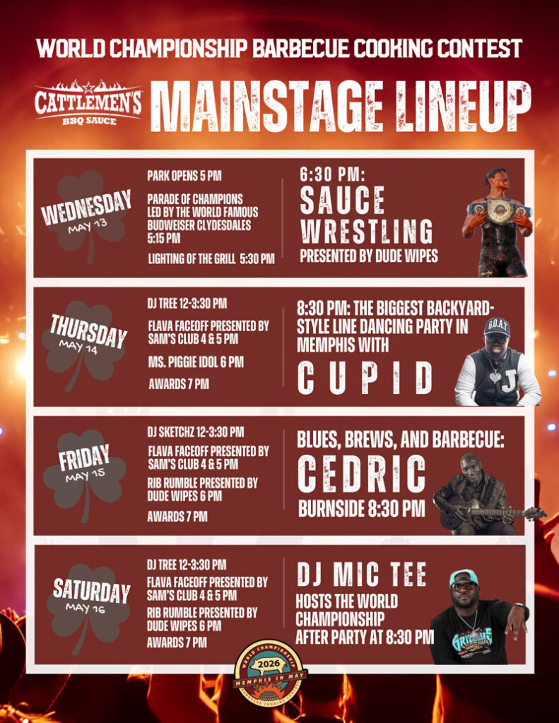 “This year, we’re creating more ways for fans to engage, explore, and celebrate the culture of barbecue,” said Mack Weaver, President and CEO of Memphis in May. “Whether you come for the food, the music, or the memories, the 2026 World Championship Barbecue Cooking Contest will deliver an experience like no other.”